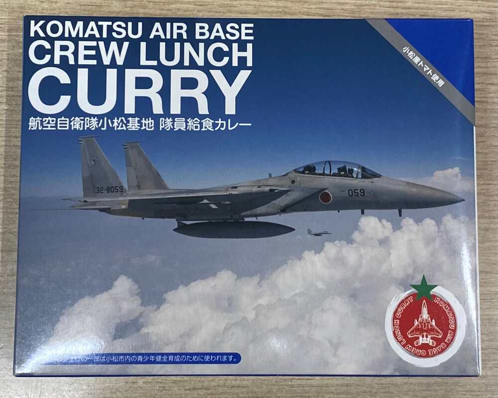 800円(税込) 航空自衛隊小松基地の食堂メニューのレシピを忠実に再現しました!「小松産トマト」やその他肉や魚介、野菜やフルーツなど様々な材料の味を一つに調和させた、複雑で重厚な味わいを楽しめる辛口の本格カレーです。 |