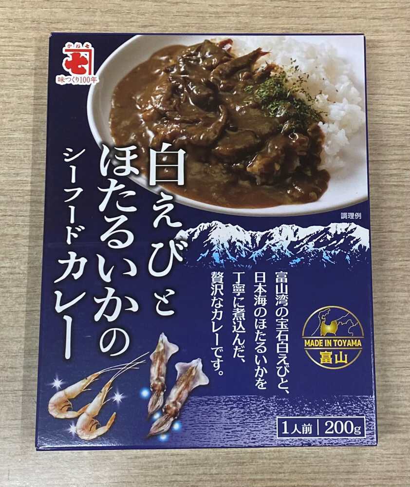 価格:540円(税込) 富山湾の宝石といわれる「白えび」、日本海の神秘といわれる「ほたるいか」をじっくり丁寧に煮込んだ富山を味わう贅沢カレーです |